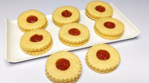 Мягкое песочное печенье с джемом в середине рецепт