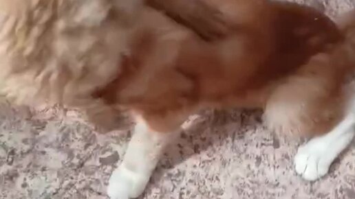 Миниатюрный пудель и Мейн-Кун играют.