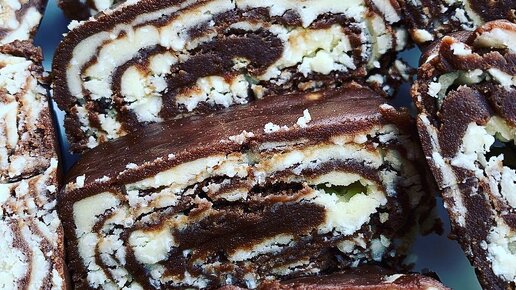 РУЛЕТ К ЧАЮ БЕЗ ВЫПЕЧКИ Встречается много вариантов приготовления такого рулета, его ещё называют «Баунти». Покажу Вам один из вариантов