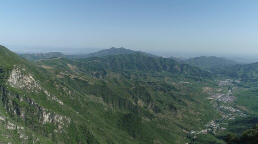 Великая Китайская стена. Многокилометровый участок с высоты. Горы в пригороде Пекина.