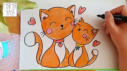 Как нарисовать КОТА поэтапно для детей | Как нарисовать КОШКУ и КОТЁНКА | Няня Уля
