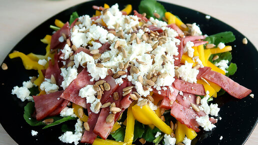 Салат с рукколой ветчиной и сыром Фета. Яркий и очень вкусный
