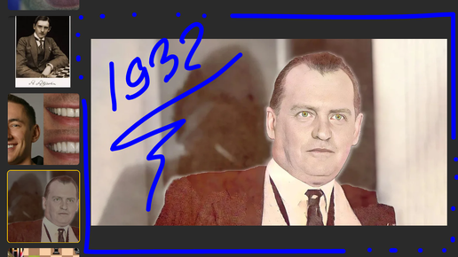 Голливудская улыбка А. Алехина заблестелауже на 24 ходу, ведь он мощно побеждает у Борохова в "слепом" сеансе 1932 года в Лос-Анджелесе