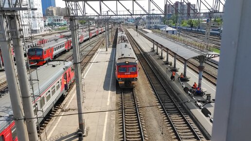 Электропоезд ЭД2Т-0034 прибывает на станцию Новосибирск-Главный