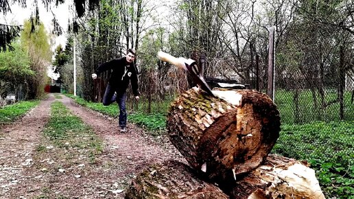 Эксклюзивный способ колки дров метанием топора.