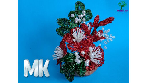 Цветы из бисера Красивая композиция в маленьком кашпо из гипса своими руками\Master diy