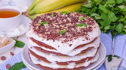 С легкостью можно приготовить для семейного чаепития! Шоколадный торт с бананами.