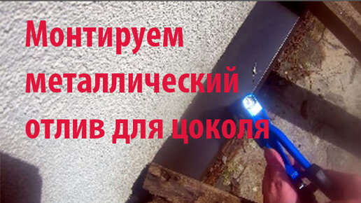 Монтируем металлический отлив для цоколя, клеим на монтажную пену в терморазрыв между утеплителями стены и цоколя