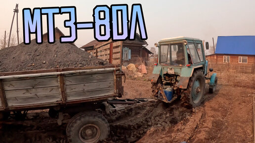 Привезли ТРАКТОРОМ МТЗ-80Л полную телегу шлака. Кристина ищет металлоискателем на участке.