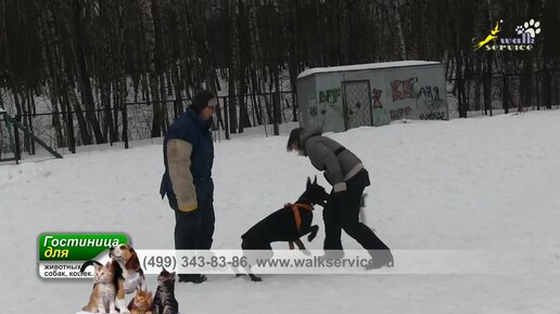 Доберман, гуманное обучение отпуску рукава с помощью игрушки