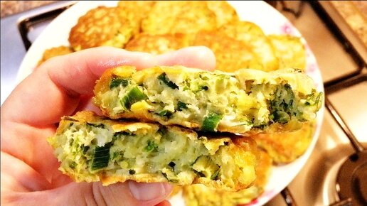 Ленивые пирожки или оладьи "Пятиминутки"с зелёным луком. Пышные, мягкие, никогда не оседают!