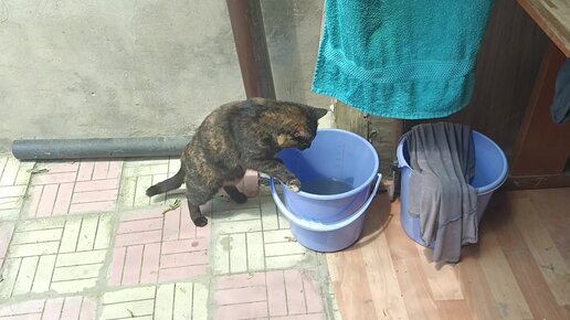 Кошка пьет ГРЯЗНУЮ воду, лишь бы из ведра