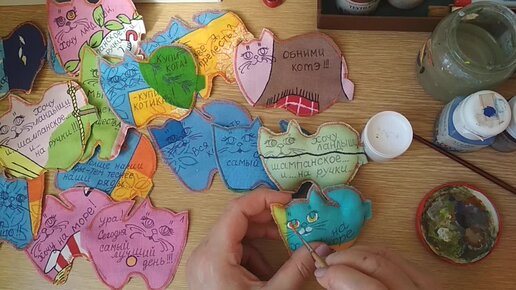 ТЕКСТИЛЬНЫЙ КОТИК с надписью_ РОСПИСЬ МОРДОЧКИ