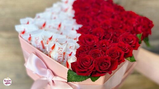 Букет с Цветами и Raffaello в Шляпной Коробке