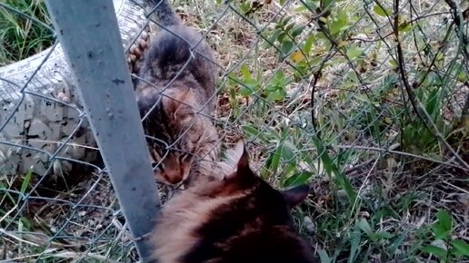 Котофей Кузя знакомится с другим котиком на прогулке