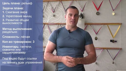Мужской облегчённый домашний план для новичков на рельеф из 3-х тренировок (1 тр)