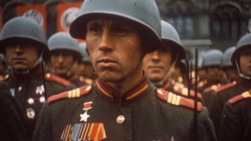 Уникальная цветная кинохроника Парада Победы на Красной площади 1945 года