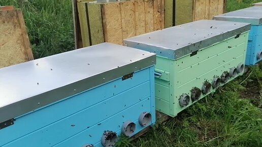 Пересадил пчёл в Владимирские ульи лежаки ЭКО. Привёз на пасеку. Открыл летки. Пчёлы полетели.