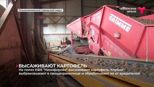 На полях КФХ "Никифорово" высаживают картофель. Клубни выбраковывают в овощехранилище и обрабатывают их от вредителей