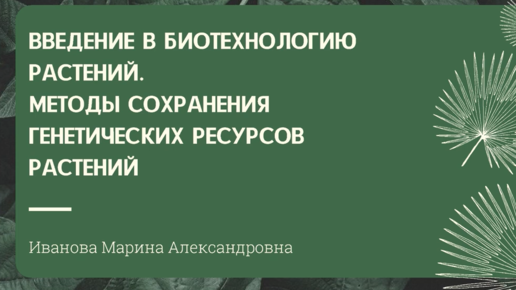 Введение в биотехнологию растений. Методы сохранения генетических ресурсов растений
