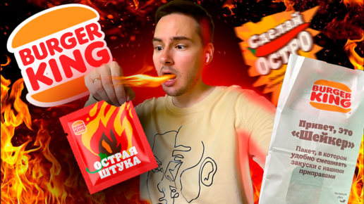 Пробую Острое меню в Бургер Кинг. Новая "Адская" приправа "Острая штука". Шейкер в подарок. Они советуют добавить Чили в мороженое