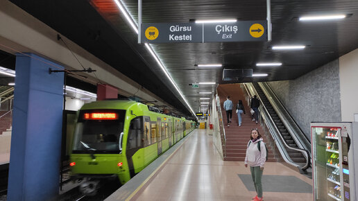 Метро в городе Бурса в Турции - часть 1 - едем от конечной станции Emek до футбольного стадиона