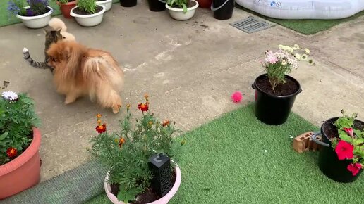 Утренняя прогулка с хвостиками, кошку напрягли плавающие подстаканники.