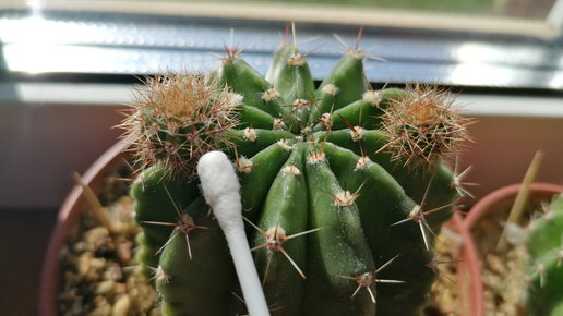 Эхтнопсис Эрье - ампутация "ушей" ватной палочкой. Мои кактусы.