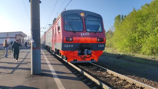 Электропоезд ЭД4М-0305 прибывает к о.п. Совхоз Бердский
