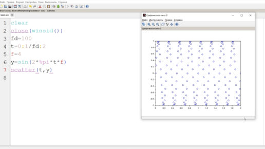 ЦОС часть 1. Введение в Scilab, синтез простейших сигналов, теорема Котельникова.