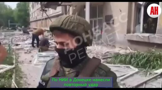 Момент повторного удара по НИИ в Донецке попал на видео.