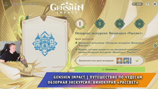 Геншин Импакт ➤ Дуэль! К вершинам карточного мастерства ➤ Путешествие по чудесам ➤ Обзорная экскурсия: Винокурня «Рассвет» ➤ Genshin Impact