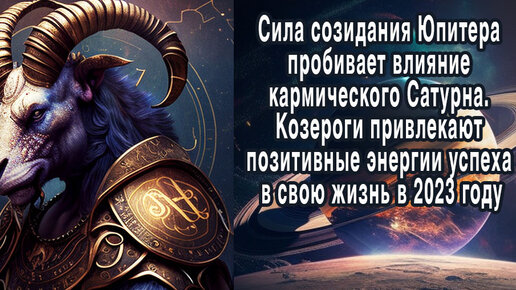 Сила созидания Юпитера пробивает влияние кармического Сатурна. Козероги привлекают позитивные энергии успеха в свою жизнь в 2023 году