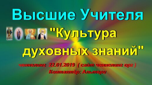 Ченнелинг Высшие Учителя «Культура духовных знаний» Занятие в Школе Духовных Знаний 22.01.2019 Духовные знания основаны на Духовных Законах