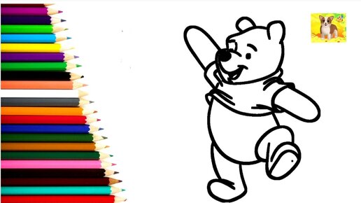Как рисовать Винни Пух. Рисунок раскраска для детей Винни Пух. Рисую забавные милые рисунки для детей