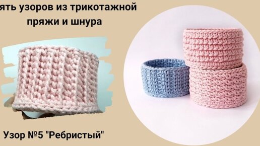 Пять узоров из трикотажной пряжи и шнура. Узор №5 "Ребристый"