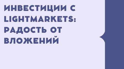 Инвестиции с LighTmarkets Радость от вложений