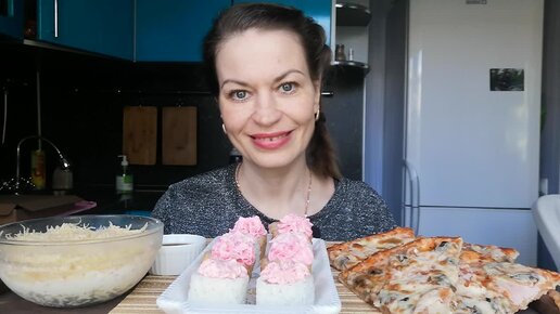 МУКБАНГ РОЛЛЫ, ПИЦЦА, САЛАТ/MUKBANG HALK FAMILY ЕДА
