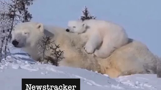 Спать у мамочки на спине куда приятнее, чем на пушистом снегу! Милый медвежонок забрался на сонную маму и решил вздремнуть