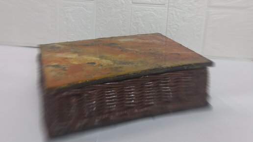 Шкатулка из бумажной лозы с крышкой задекорированной эпоксидной смолой