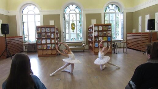 Танец маленьких лебедей на паркете в городской библиотеке. Одно из выступлений на "Библионочи" в Кемерово