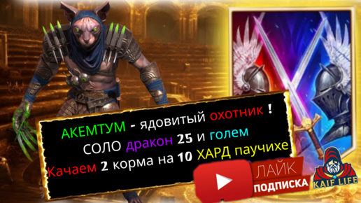 АКЕМТУМ - ЯДОВИТЫЙ ЗВЕРЮГА ! Качаем корм на 10 ХАРД ПАУЧИХЕ ! Соло дракон 25 и голем ! Обзор RAID