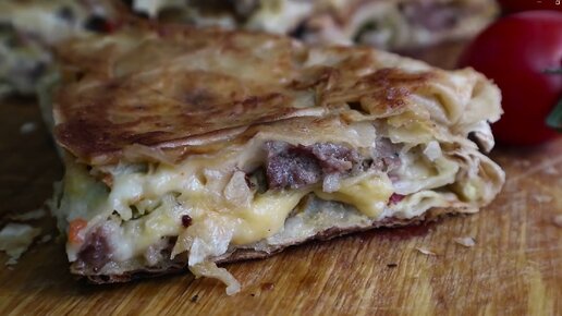 Берем 2 листа лаваша, закидываем внутрь начинки и идем отдыхать. Через 20 мин блюдо для всей семьи готово (вкуснее пиццы)