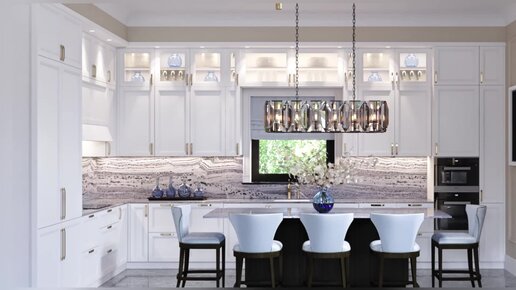 Просторное и светлое пространство совмещенной кухни-гостиной в загородном доме