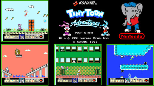 Tiny Toon Adventures (Тини Тун) (NES / Денди) - Прохождение. БЕЗ КОММЕНТАРИЕВ. НЕ СПЛЮЩЕННАЯ картинка, БЕЗ фильтров. Оригин.кадр 1080p60 HD