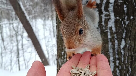 Голодная белка зимой