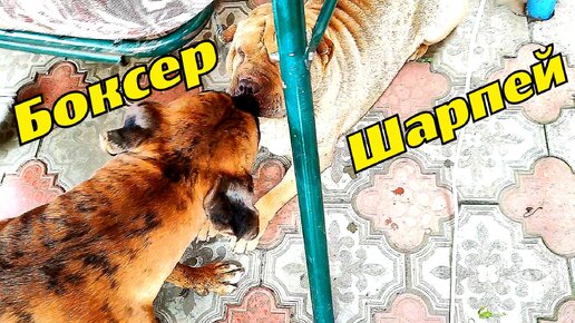 Породы собак шарпей и боксер трутся возле шизлонга✅ Породистые собаки❗❗❗