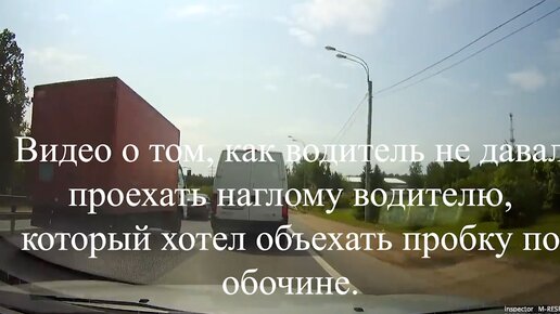 Видео о том, как водитель не давал проехать наглому водителю, который хотел объехать пробку по обочине.