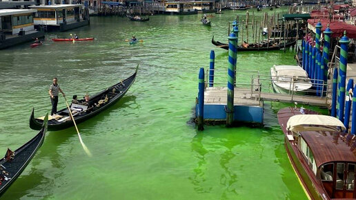 Вода Большого канала в Венеции окрасилась в ярко-зеленый цвет