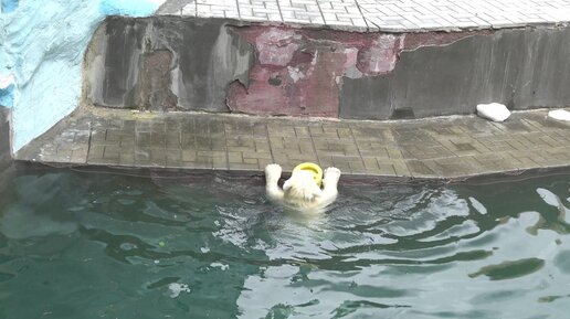 Медвежонок плавает с новой игрушкой. 29.05.2023